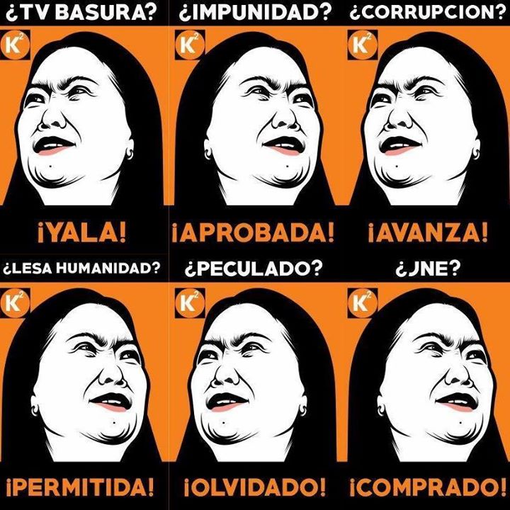 Los judíos y Keiko son mostrados como el mismo satanás incluso la pintan de amarillo, con cara de cerdo por ser llenita, ademas de ojos jalados que nos recuerda como mostraban los norteamericanos a los japoneses para enfurecer a las tropas lo peor que una persona se puede imaginar pero esto es horripilante no es propio de una campaña en aras a la democracia sino un movimiento extremista que solo piden la cabeza de ella y sus partidarios en otros palabras piden un absolutismo político el de Ppk, eso es prohibir la libertad de expresión, la igualdad, la democracia y una campaña digna.